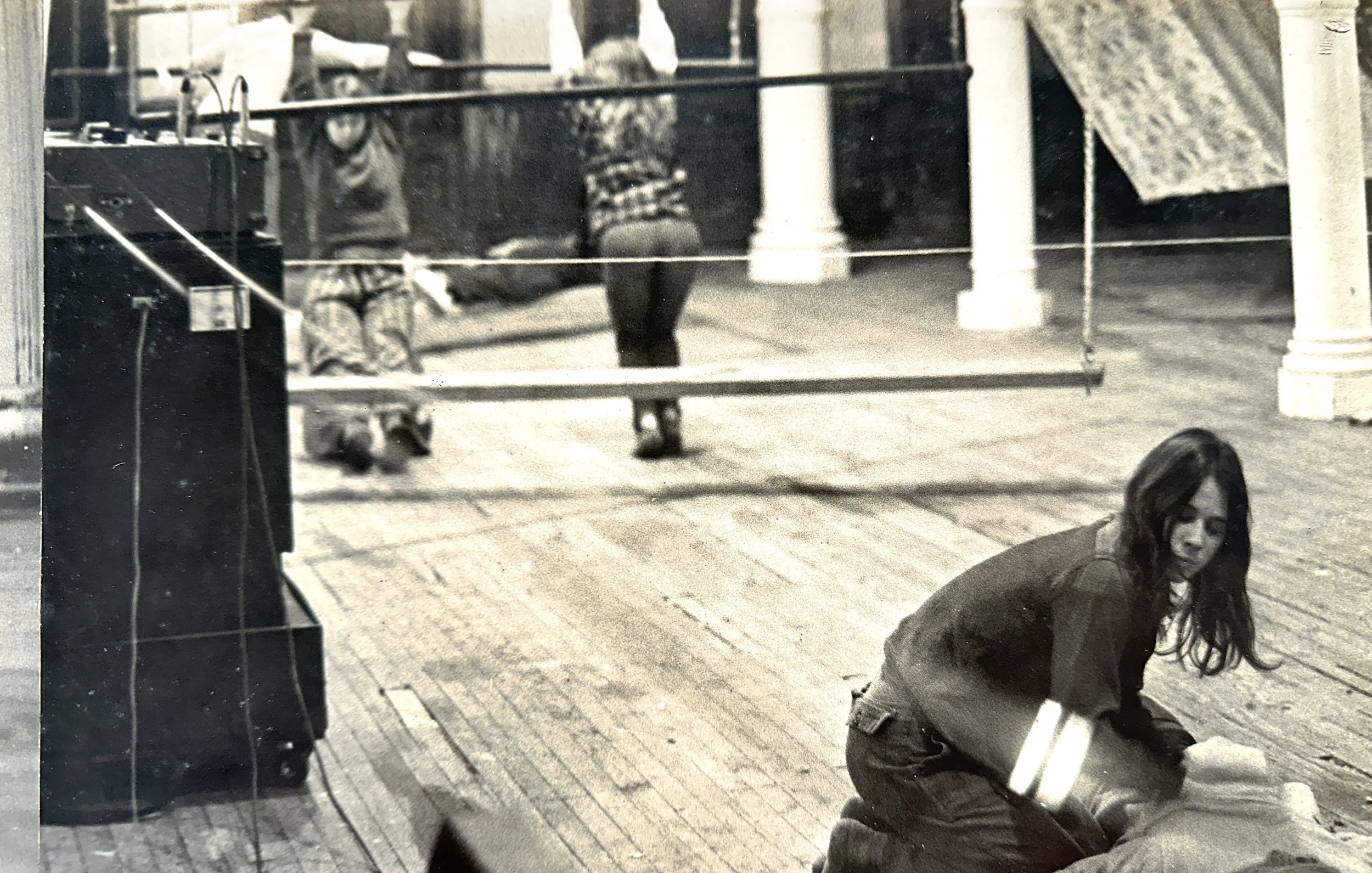 Tina Girouard and collaborators performance documentation, black and white photo